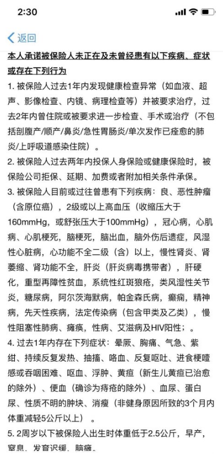 要提到的另一點(diǎn)是,很多小伙伴都在提問(wèn):健康告知不能放在顯眼的地方嗎? !可以放大嗎?事實(shí)上,對(duì)于支付寶上的大多數(shù)產(chǎn)品,健康告知已經(jīng)非常明顯了:但是,如果您在線申請(qǐng)保險(xiǎn),只要您點(diǎn)擊購(gòu)買,健康告知就會(huì)跳出單獨(dú)的頁(yè)面。投保人必須檢查以下內(nèi)容(按照健康告知)通過(guò)并完成保險(xiǎn)。通常健康告知將包含以下內(nèi)容: