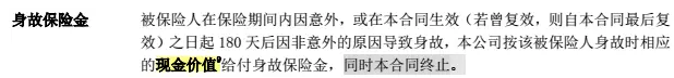 達(dá)爾文1號對于身故保障是給付保單的現(xiàn)金價(jià)值。