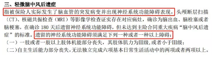 嚴(yán)重腦中風(fēng)后遺癥是高發(fā)重疾之一,而它的較輕癥狀——輕微腦中風(fēng)后遺癥屬于高發(fā)輕癥疾病。在腦中風(fēng)后遺癥疾病定義中,會(huì)出現(xiàn)哪些差異呢?