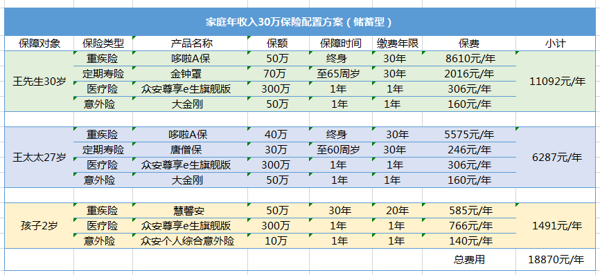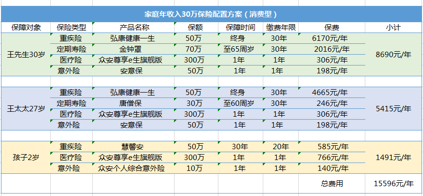 下邊我們來舉例說說,年收入30萬的家庭怎么買保險?