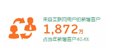 根據(jù)平安人壽發(fā)布的2017年年度披露報告顯示,在2017年,來自互聯(lián)網(wǎng)用戶的新增客戶已有1872萬人,占當(dāng)年新增客戶的40.4%。