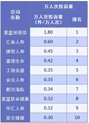 我們可以看出來,即使是萬(wàn)人次投訴量最高的復(fù)星保德信,也僅為1.8。