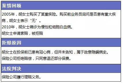 首先,胡女士的冠心病是幾年前的事,并且在投保時(shí)已經(jīng)好了。業(yè)務(wù)員當(dāng)時(shí)只問了胡女士是否得過重大疾病,沒有詢問冠心病,她沒有回答也是正常的。