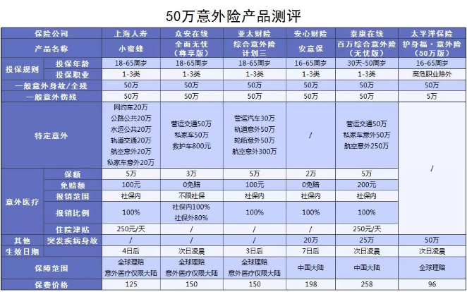 所以可以考慮買兩份50萬(wàn)的意外險(xiǎn)疊加。