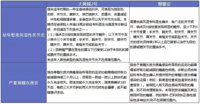 綜合來看,大黃蜂2號除了幼年型類風(fēng)濕性關(guān)節(jié)炎這一項理賠標(biāo)準(zhǔn)比較嚴(yán)格以外,其他的少兒特疾保障部分都是更優(yōu)于慧馨安的。