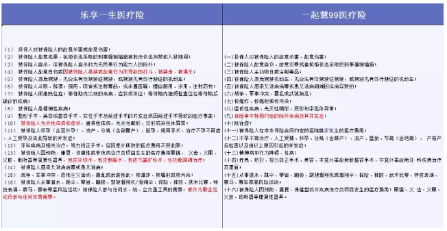 綜上,在責(zé)任免除方面,一起慧99醫(yī)療險(xiǎn)比樂(lè)享一生醫(yī)療險(xiǎn)略有優(yōu)勢(shì)。