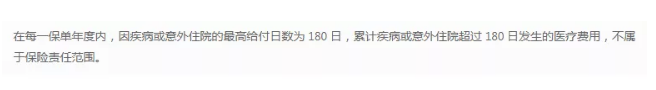 1年有365天,條款里只注明報(bào)銷180天,反過(guò)來(lái)說(shuō),剩下185天的醫(yī)療住院費(fèi)用就不在報(bào)銷范圍內(nèi)了。