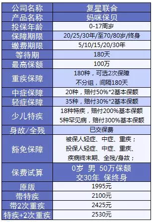 而在近期,復(fù)星聯(lián)合健康率先打破平靜,推出了一款名為“媽咪保貝”的少兒重疾險(xiǎn)。