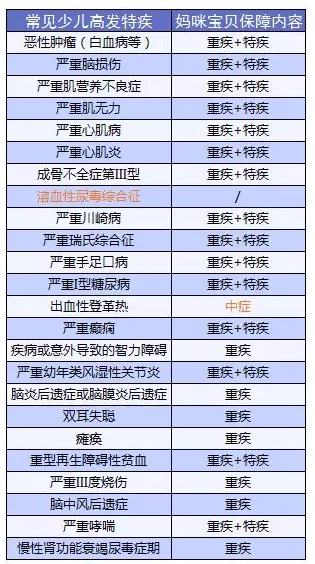 媽咪寶貝在特疾保障上,疾病數(shù)量多,而且覆蓋的病種也很有誠(chéng)意,幾乎涵蓋了最常見(jiàn)的少兒高發(fā)重疾: