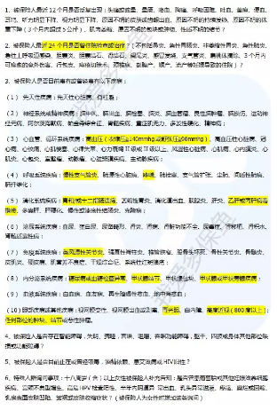 針對(duì)常見的比如:一年內(nèi)是否有住院情況、高血壓、哮喘、乙肝病毒攜帶、糖尿病、甲狀腺結(jié)節(jié)等都有詢問,比較嚴(yán)格。