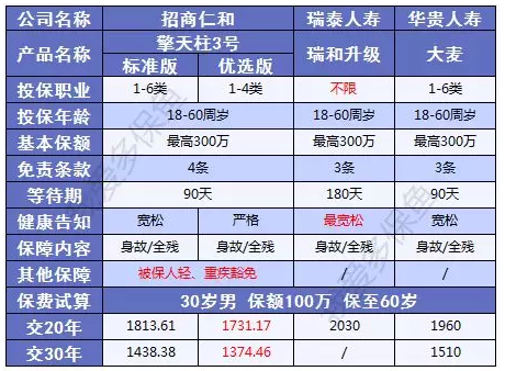 擎天柱3號(hào)分兩個(gè)版本,標(biāo)準(zhǔn)版和優(yōu)選版,差別主要體現(xiàn)在健康告知上。