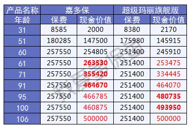 現(xiàn)金價值高:這款的現(xiàn)價也很可觀,同樣在61歲的時候現(xiàn)價已經(jīng)很客觀了。