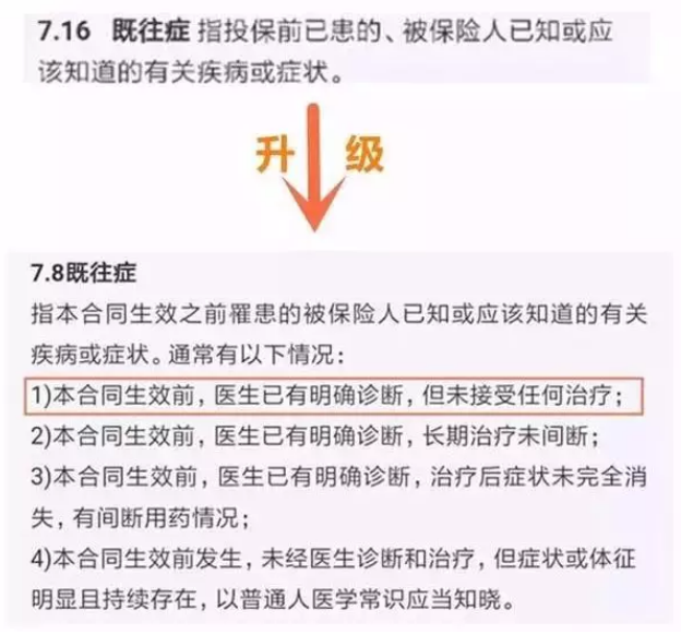 在免責條款里,變化最大的是關于“既往癥”的描述:
