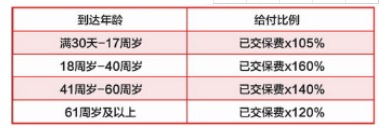 C款根據(jù)身故年齡按比例給付身故金。如下表: