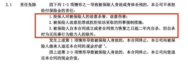 它只對(duì)故意殺害、傷害行為,犯罪和2年內(nèi)的自殺有免責(zé)要求。對(duì)吸毒、酒駕、暴亂、核輻射等都沒(méi)有免責(zé)的要求。