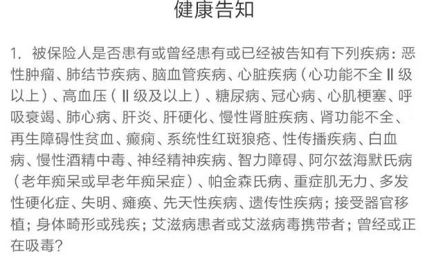 大多數(shù)定期壽險(xiǎn)的健康告知都差不多,大麥定壽的健康告知不算太嚴(yán)格,只有4條,主要是詢問(wèn)疾病和一些高?;顒?dòng)。