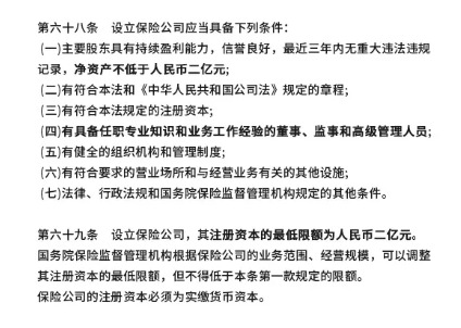 - 要持續(xù)很有錢:至少2億,還得是實(shí)打?qū)嵉默F(xiàn)金貨幣,但從目前保險(xiǎn)公司的注冊(cè)資本來(lái)看,很少有低于20億的。