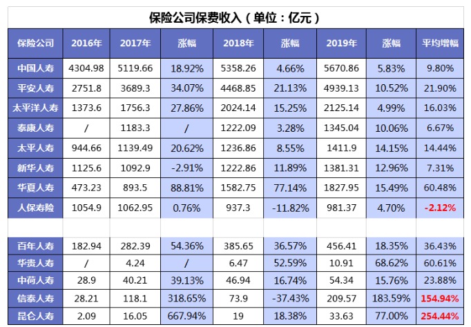這可不是紅口白牙胡咧咧,一些公司最近幾年的保費(fèi)收入增長(zhǎng),已經(jīng)很能說(shuō)明問題了。