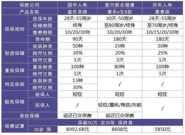蓋世英雄的輕癥設(shè)計(jì)的比較好,輕癥賠付1次,8大高發(fā)輕癥也包含在內(nèi),賠付基本保額的30%。保障的很全面,保障力強(qiáng)!