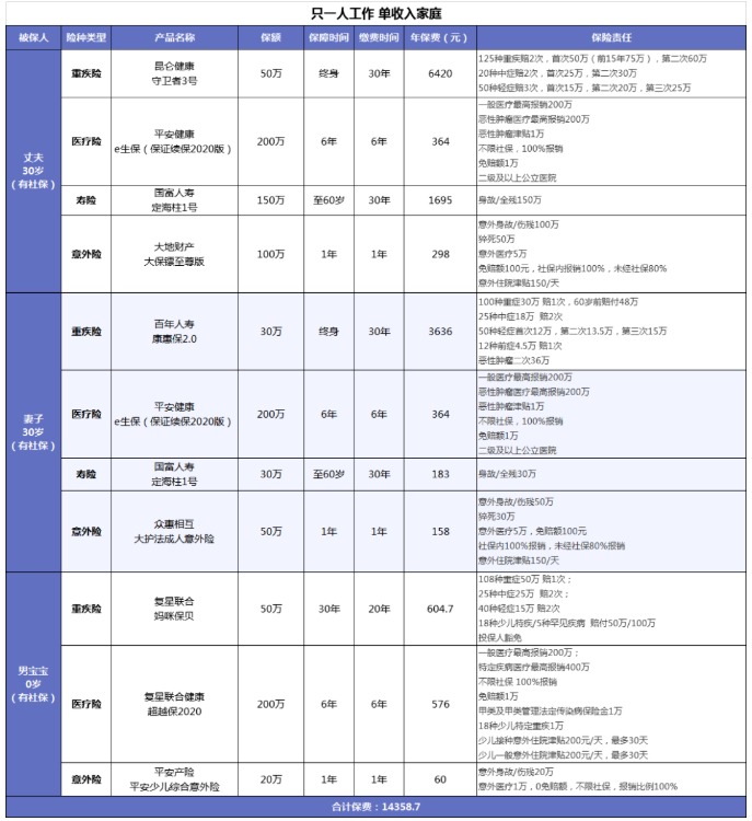 總的來說,小王家的方案思路就是在有限預算內(nèi),盡可能買到更高的保障。