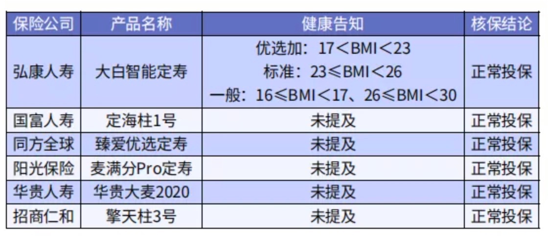 也就是說(shuō)無(wú)論是超重還是偏瘦的人群,只要能通過(guò)健康告知,都能順利買(mǎi)到壽險(xiǎn)。