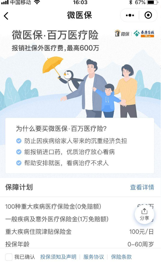 騰訊的微醫(yī)?!ぐ偃f醫(yī)療險怎么樣