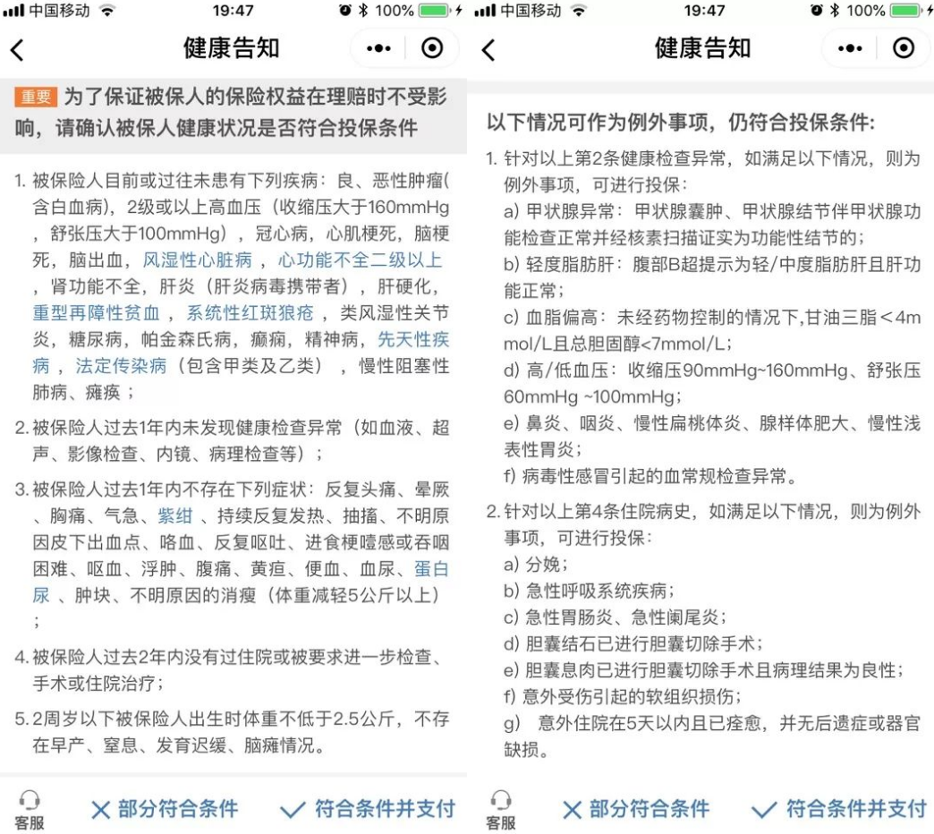 我們知道醫(yī)療保險是所有類型保險中最嚴格的健康告知要求。該產(chǎn)品的“健康告知 +智能核保”可以說與時俱進、比較人性化。