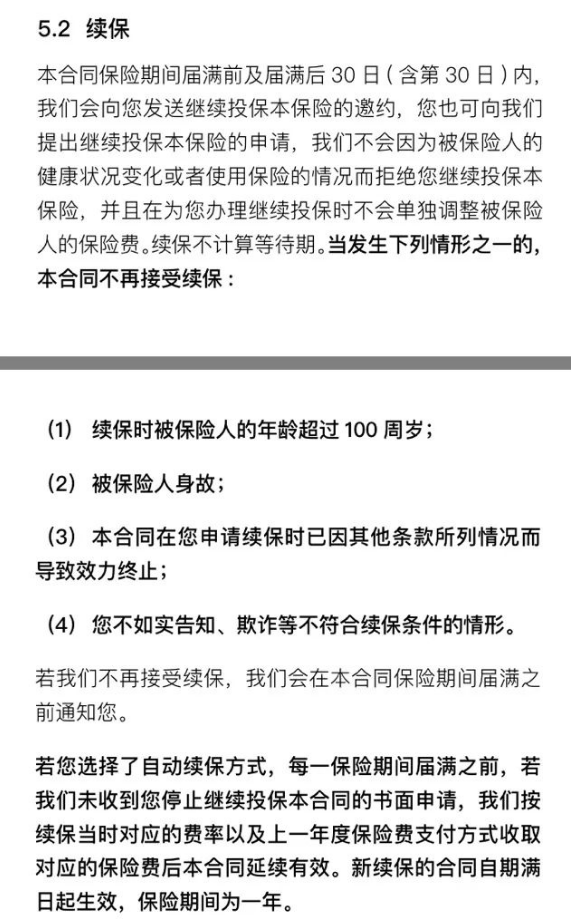 醫(yī)療保險的另一個關(guān)鍵問題是:續(xù)保。這個產(chǎn)品的續(xù)保條款是這樣寫的: