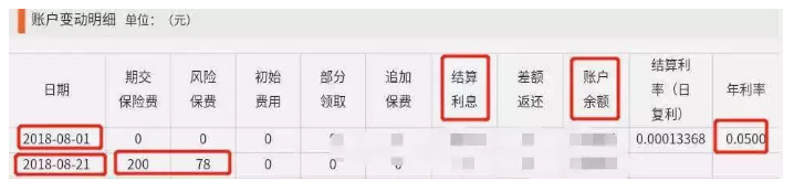 每月21日扣除保費200元,其中 78元風險為保費,另一個進入萬能賬戶余額,月利率于1日結(jié)算。實際結(jié)算年化利率為5%;