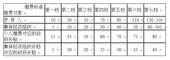 城鄉(xiāng)居民社會(huì)養(yǎng)老保險(xiǎn)繳費(fèi)標(biāo)準(zhǔn)(單位:元/月)