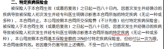 輕癥:30種,支付1次,保險(xiǎn)金額20%