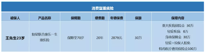 產(chǎn)品推薦消費者重疾險 +醫(yī)療保險+意外險 +定期壽險。