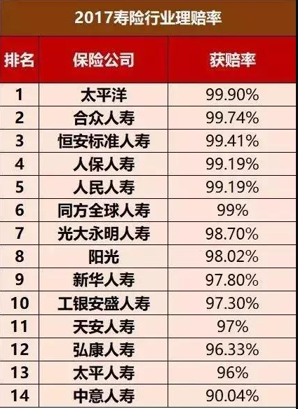 關(guān)于賠償問題,中國(guó)保險(xiǎn)監(jiān)督管理委員會(huì)對(duì)此進(jìn)行了嚴(yán)格監(jiān)控。人壽保險(xiǎn)公司每季度的償付能力必須超過100%,即如果所有投保人尋求保險(xiǎn)公司的索賠,保險(xiǎn)公司必須具備相應(yīng)的能力支付。如果保險(xiǎn)公司的償債能力不足,中國(guó)保監(jiān)會(huì)將要求停止新訂單的運(yùn)作,保險(xiǎn)公司股東將被要求注入資金,而保險(xiǎn)公司的股東都是國(guó)家支柱產(chǎn)業(yè)。讓我們來看看2017年保險(xiǎn)公司的賠償率: