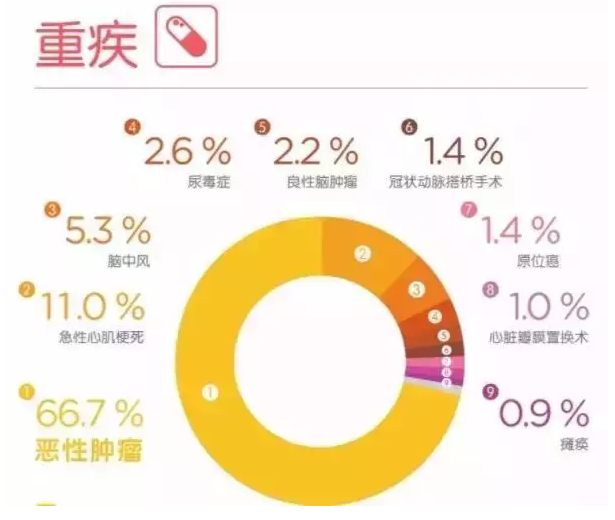 2)心臟病后第二次心臟復(fù)發(fā)的概率為2.42%;所有其他責(zé)任,無(wú)論是患有癌癥和其他嚴(yán)重疾病,還是患有其他嚴(yán)重疾病和癌癥,都不會(huì)超過(guò)2%。