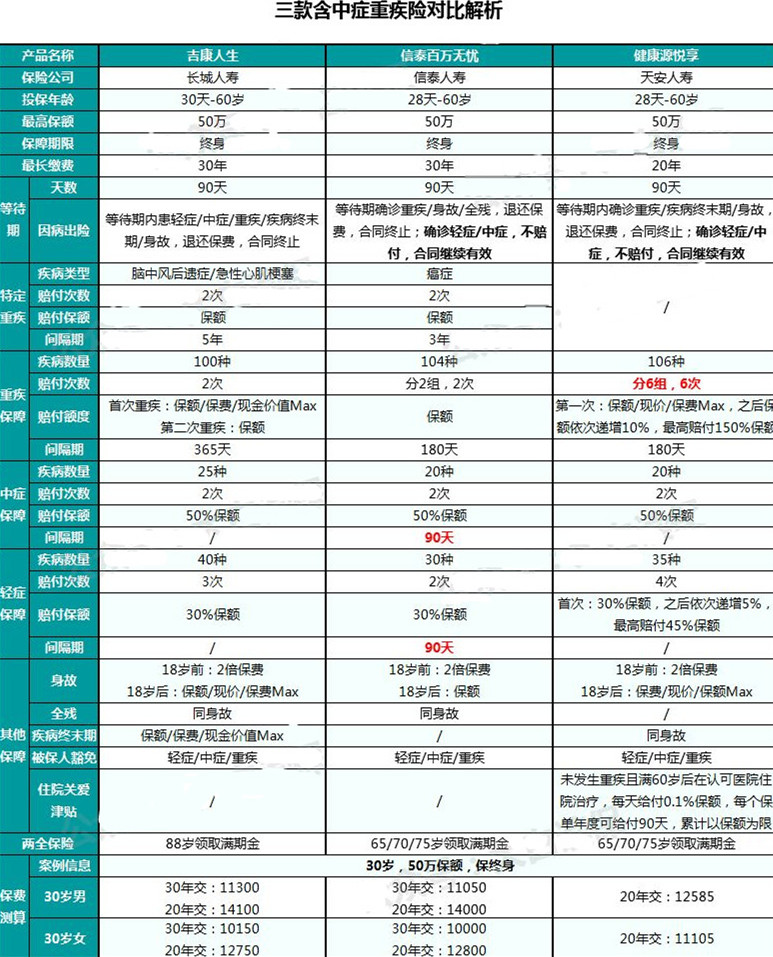 長城 信泰 天安三款重疾險(xiǎn)測(cè)評(píng)