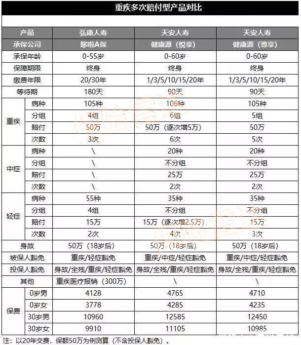天安健康源和弘康哆啦A保的多次賠付重疾險比較