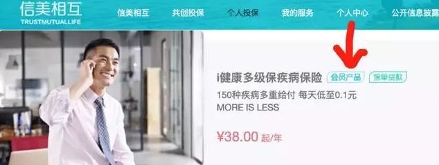 信美產(chǎn)品的官方網(wǎng)站成員將標有特殊標簽,而其他一年醫(yī)療保險和意外險都是非會員產(chǎn)品。