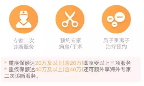 當(dāng)保額達(dá)到200,000及以上(包括200,000),如患有嚴(yán)重疾病的被保險人,您可以享受專家二次診斷、預(yù)約專家/病房/手術(shù)、質(zhì)子重離子治療預(yù)約三項服務(wù);