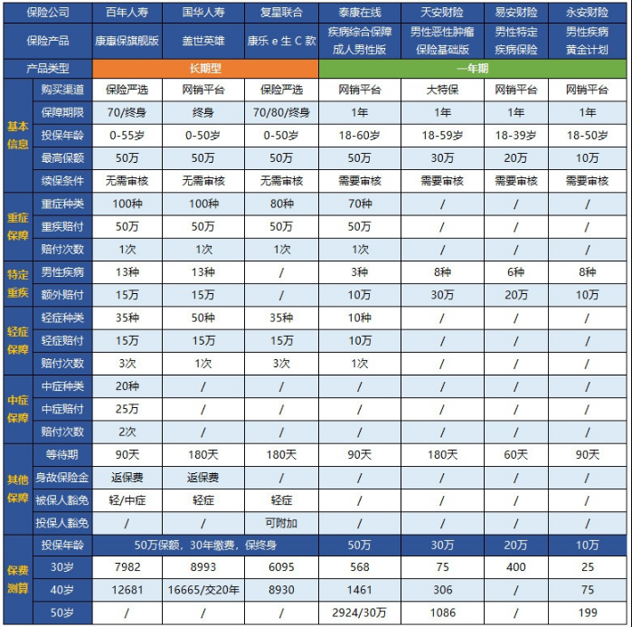 我們要知道,其實(shí)只要購(gòu)買了足夠的保額,其實(shí)保障都是購(gòu)的,特別是對(duì)于我們普通人來(lái)說(shuō),基本上就可以應(yīng)對(duì)大病帶來(lái)的風(fēng)險(xiǎn)。但是,家里有這么么一個(gè)人是家庭里面最重要的,他負(fù)責(zé)得了家庭的主要經(jīng)濟(jì)來(lái)源,那就是孩子的爸爸、妻子的丈夫了。男性里面也存在特定保險(xiǎn),有些人為了保險(xiǎn)的針對(duì)性,會(huì)對(duì)男性特別投保一份額外的保險(xiǎn)。多保魚通過(guò)搜索,發(fā)現(xiàn)了以下的幾款產(chǎn)品: