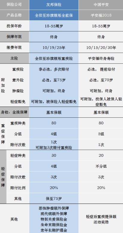 友邦全佑至珍和平安福2018保障對比