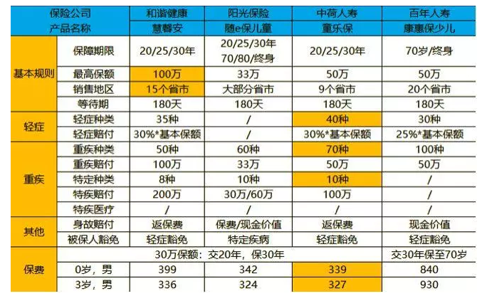 童樂保輕癥是40種,也略高于慧馨安,基本上包括患有高危疾病的兒童。