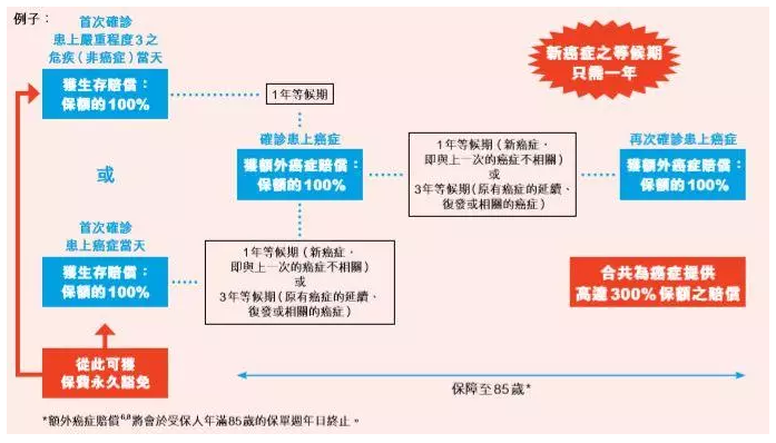 治療癌癥的技術距離千里之遠,但往往有可能再次發(fā)生。為了向被保險人提供抗擊癌癥的經(jīng)濟支持,計劃是為被保險人提供高達200%的保額的額外癌癥補償,以及計劃的首次生存補償,總計高達300%的保額補償。無論是新的癌癥(與最后的癌癥無關)還是原始癌癥、復發(fā)或相關癌癥的延續(xù),都可以通過這種額外的癌癥補償來彌補。
