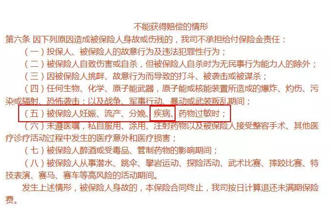 上圖是市場上熱銷的意外險產(chǎn)品的豁免條款。可以看出,由疾病引起的藥物治療(無論是否為急性疾?。?、死亡,保險公司不承擔(dān)賠償責(zé)任。而且這個產(chǎn)品的安意保,如急性心肌梗死和搶救無效,保險公司直接賠付20萬保額。