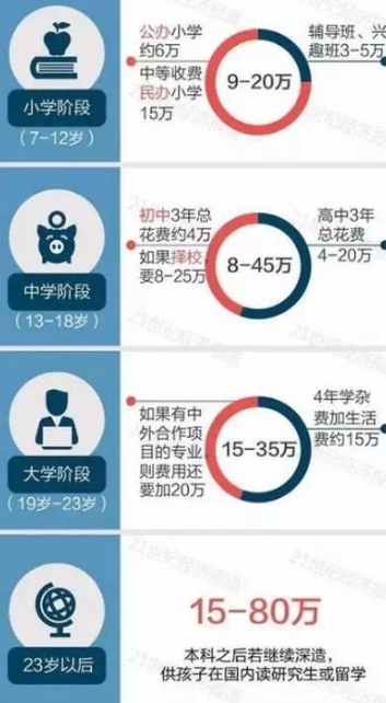 從上圖可以看出,隨著孩子的成長(zhǎng),家庭需要支付的教育費(fèi)用將高速增長(zhǎng)。如果沒有提前計(jì)劃,對(duì)家庭來說將是一個(gè)沉重的壓力。