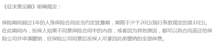 為了保護投保人的權(quán)益,國務(wù)院在今年10月發(fā)布了《關(guān)于修改〈中華人民共和國保險法〉的決定》(下稱《征求意見稿》)并公開征求民意,涉及猶豫期。
