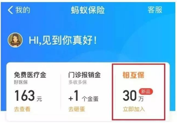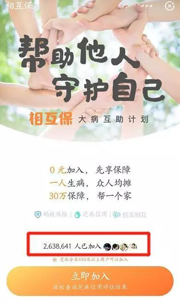 “相互保”是螞蟻保險和信美相互保險,這是支付寶螞蟻成員的互助健康保障服務(wù)。它也可以被稱為為“大病互助計劃”。
