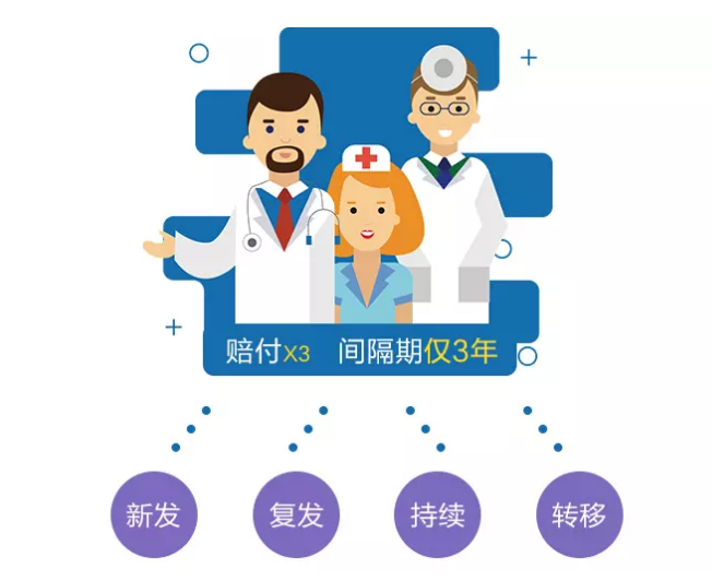 無論癌癥是否持續(xù)存在、復(fù)發(fā)、新增或轉(zhuǎn)移,只要兩個癌癥間隔達到3年,就可以再次獲得100%保額。