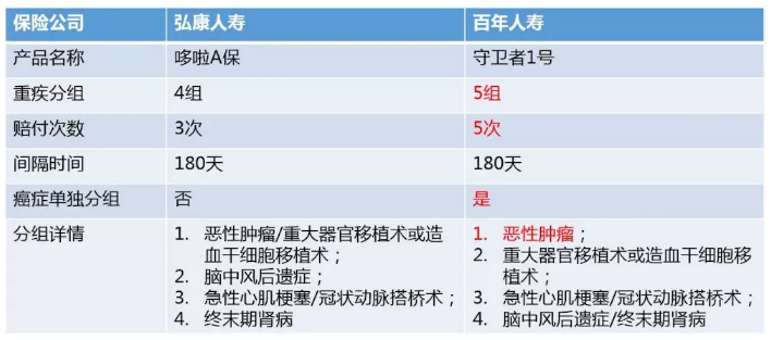 其中,癌癥最好分為幾組,因?yàn)榘┌Y是六大疾病中最高的。讓我們將哆啦A保與守衛(wèi)者1號(hào)進(jìn)行比較。