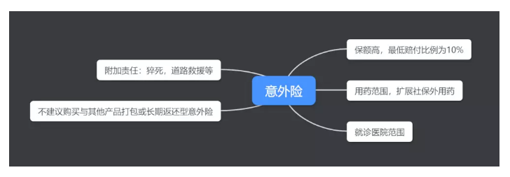 3.意外險,用于承擔事故造成的死亡,殘疾,醫(yī)療等風險。主要職責包括意外死亡,意外傷殘(10級,281項,賠付比率10%-100%),鑒于意外的突發(fā)性和后果的不確定性,建議意外險配置更高的保額,目前超過一年綜合意外險,通??梢詽M足“高保額,低保費”。