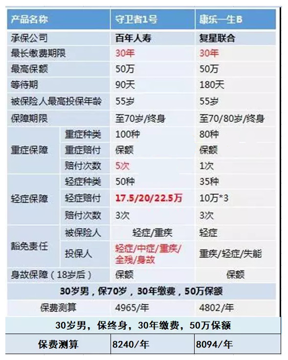 一個重疾多次賠,一個重疾一次賠;一個輕癥保額賠付高,一個輕癥保額少,而保費只相差200元,此時應該給守護者1號一些掌聲!
